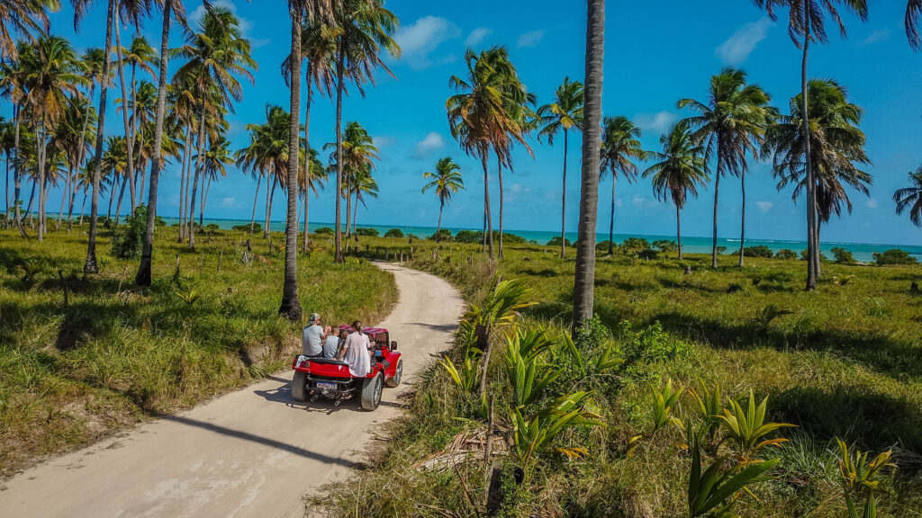Passeio de buggy em Porto de Pedras visitando a Praia da Laje, Praia do Patacho, Túnel Verde, Ponte de Tatuamunha com opcional para visita no Santuário do Peixe Boi (valor a parte).